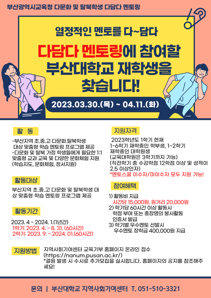 [다담다 멘토링] 2023학년도 다담다 멘토링 참여 멘토 추가 모집(이수자/미이수자 모두 지원 가능)